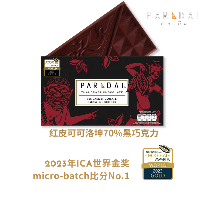 (PARADAi)Paradai (ภราดัย) 是一个来自泰国曼谷的精品Bean-to-Bar(从可可豆到巧克力棒)品牌,品牌成立于2019年前后。该品牌专注于使用泰国本地出产的可可豆(特别是洛坤府产区),以精致的泰式神佛插画为包装特色,并荣获过ICA世界巧克力大赛等多个国际奖项。