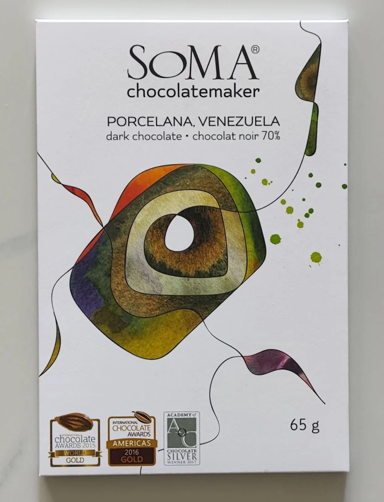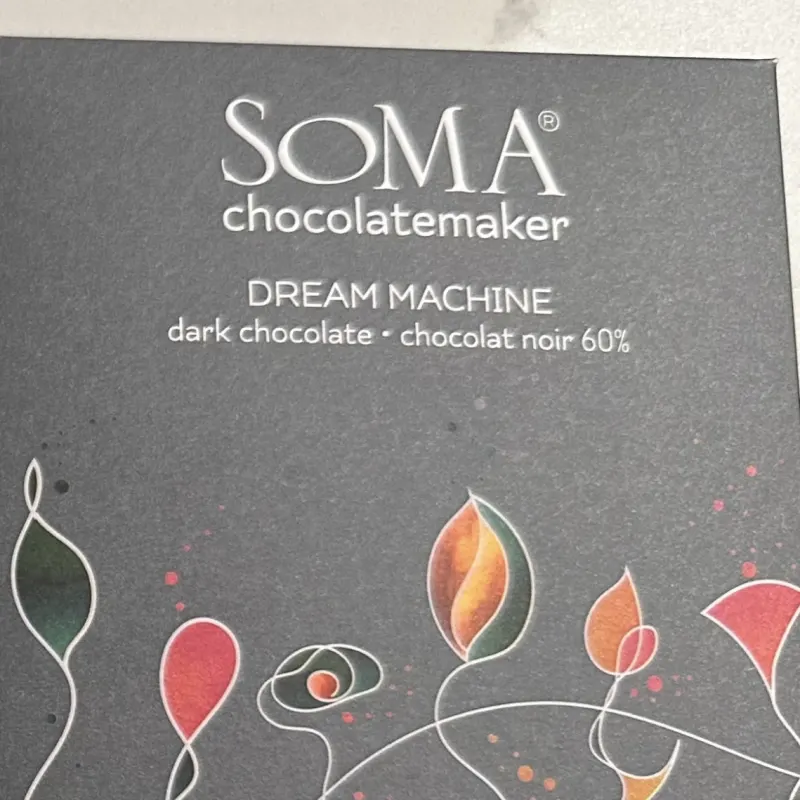 (SOMA)该品牌由 David Castellan 和 Cynthia Leung 在加拿大创立,最初的生产空间位于多伦多的一座前威士忌酒厂内。SOMA 是一家专注于制作精品小批量巧克力(micro-batch)的加拿大品牌。