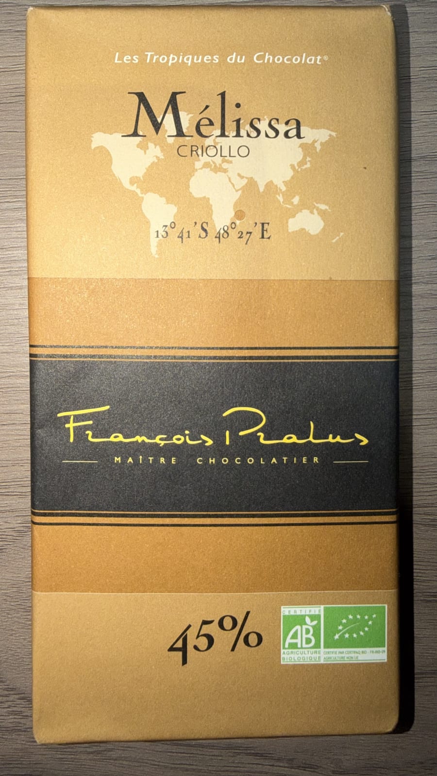 梅丽莎是Pralus女儿的名字,足以见其对这款巧克力的喜爱。可可豆来自Pralus在马达加斯加的香水庄园。入口奶味浓郁,香甜细腻,风味均衡,量大管饱,推荐。